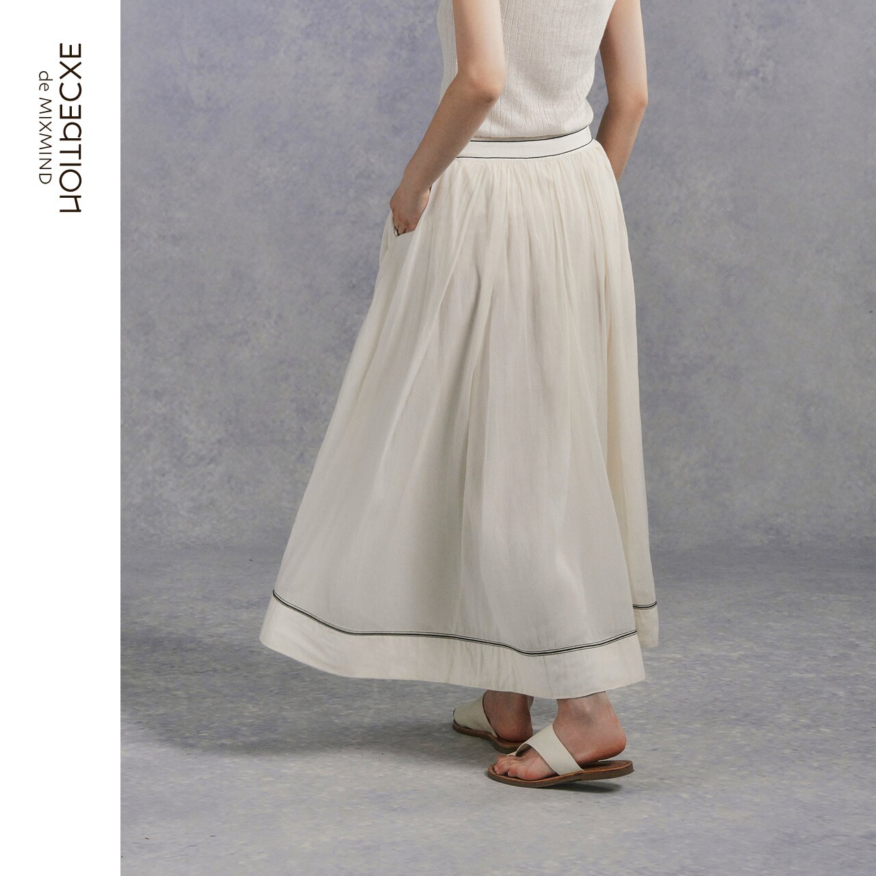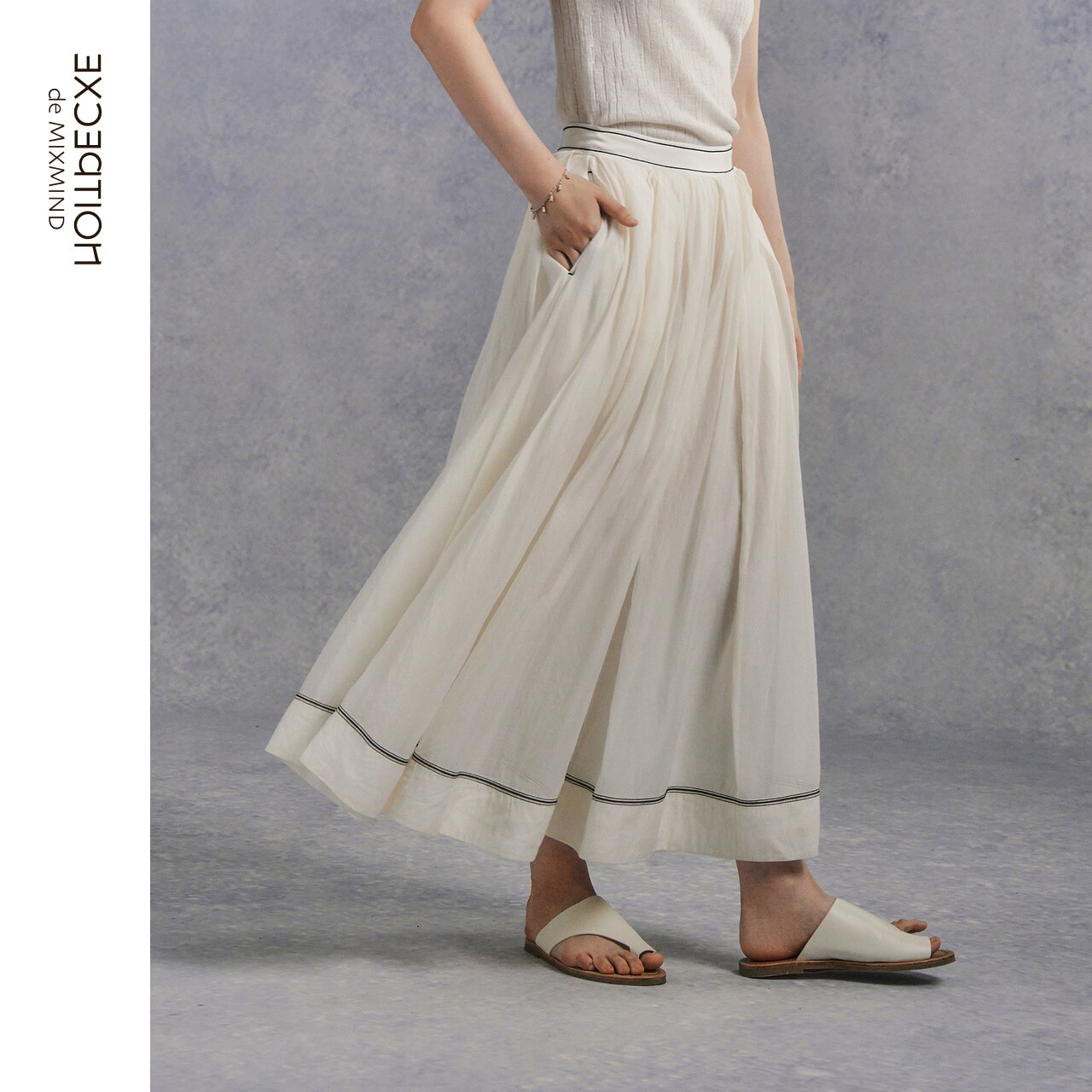 EXCEPTION例外女装 叠褶设计垂坠优雅白色半身裙 裙子夏季