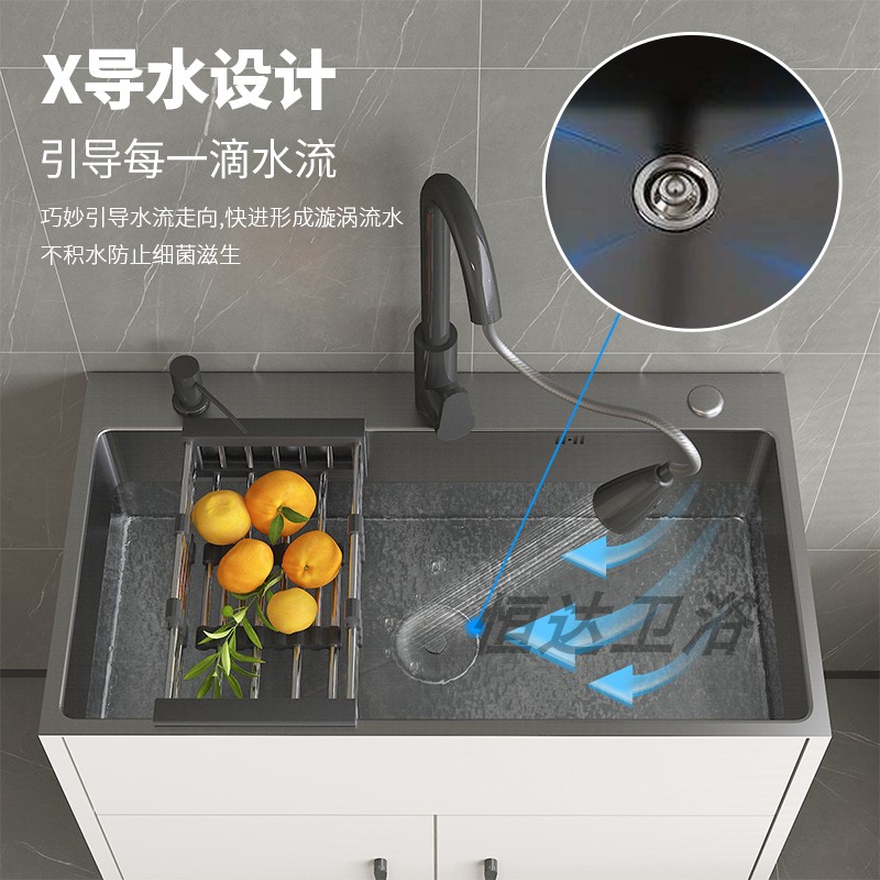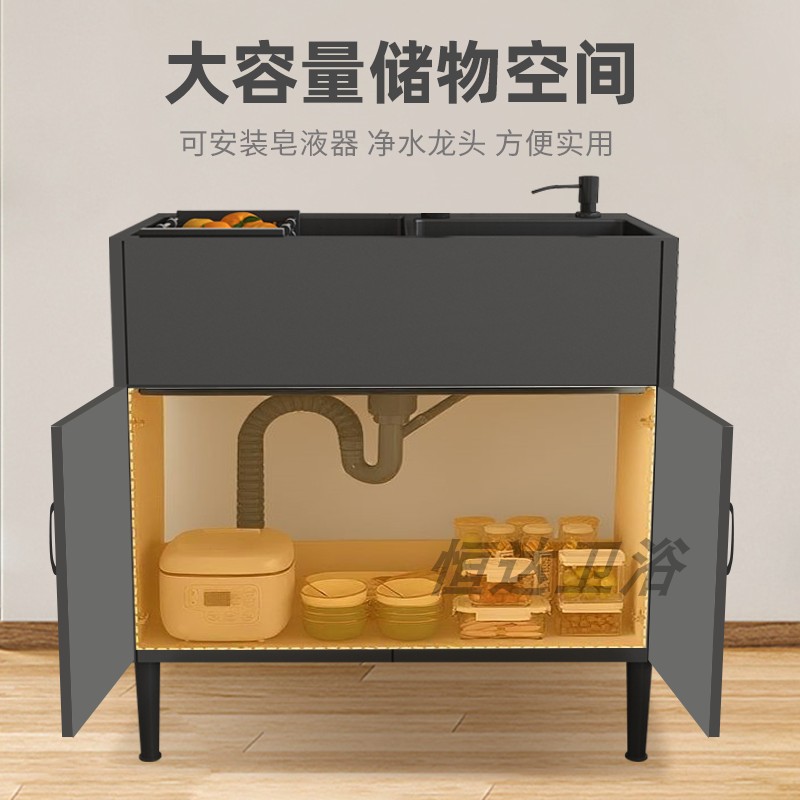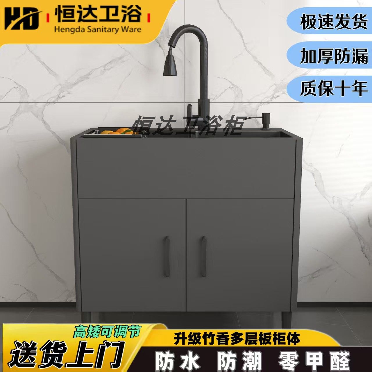 阳台水吧不锈钢洗碗池实木橱柜大单水槽洗菜盆一体柜洗手池落地柜