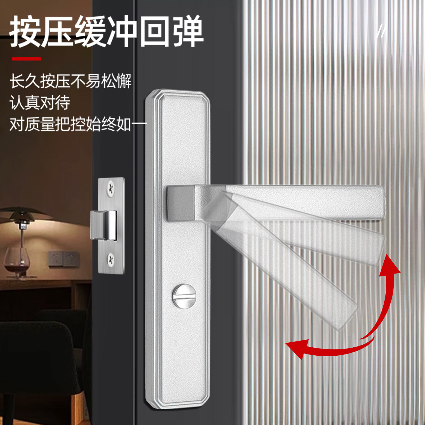 卫生间门锁通用型无钥匙家用静音洗手间厕所门浴室铝合金门把手