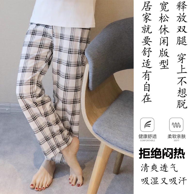 可调节怀孕期不勒肚子家居裤 孕妇睡裤 春夏季 可外穿格子裤 纯棉长裤