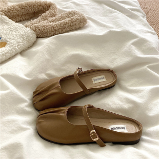 ins防滑透气外穿凉拖鞋 皱皱高级感 女夏季 温柔皮面包头凉鞋 法式