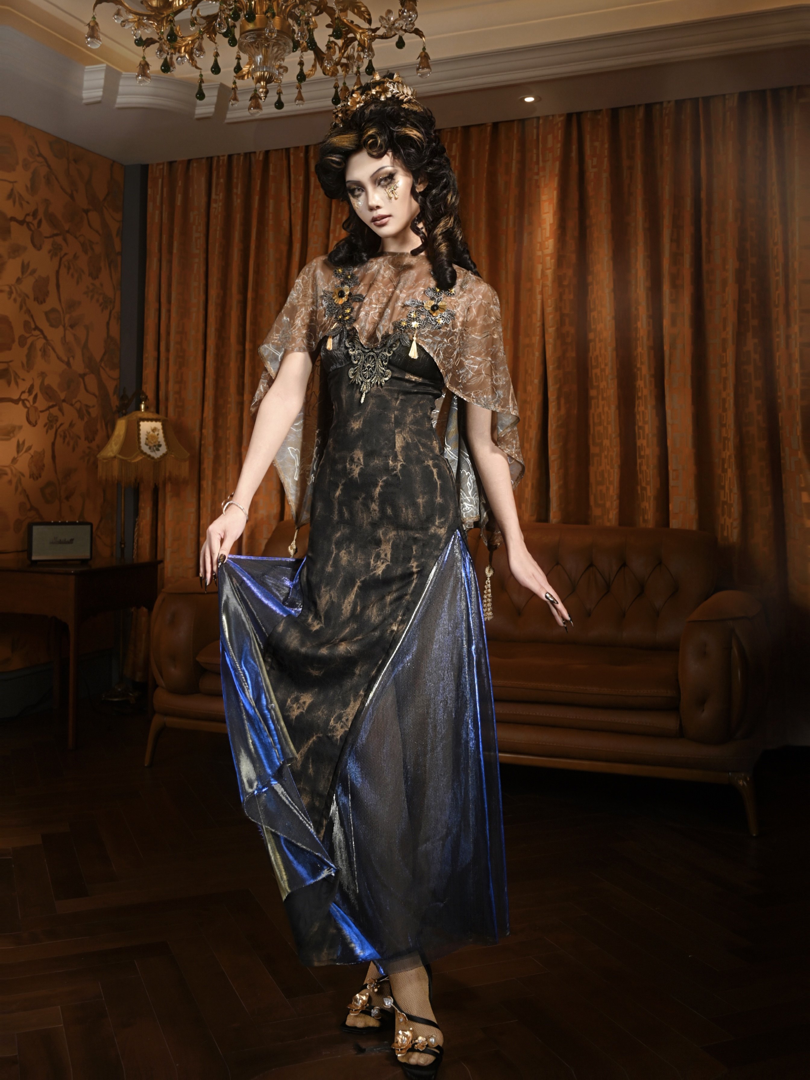 血液供给原创 收藏级绣花古典蝴蝶结宫廷斗篷披肩外搭 华灯初上