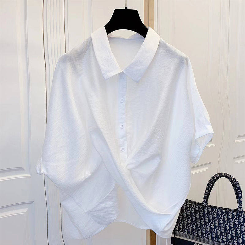 宽松显瘦百搭大码 不规则衬衫 韩版 新款 设计感小众上衣 女2024年夏装