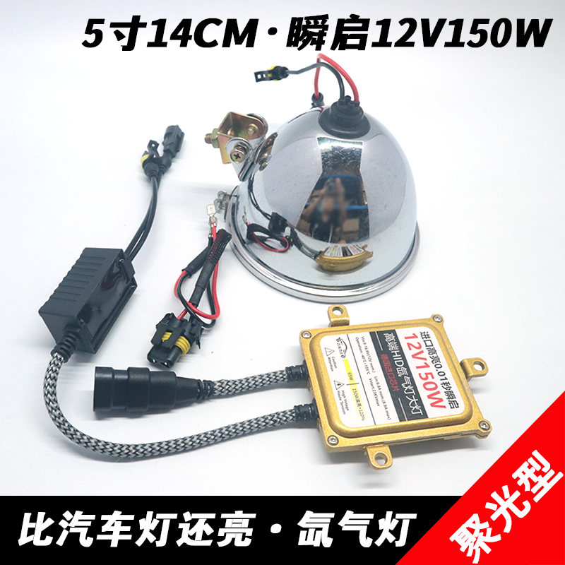 摩托车射灯电动超亮疝气灯头灯改装 强光外置三轮车灯钓鱼氙气大灯