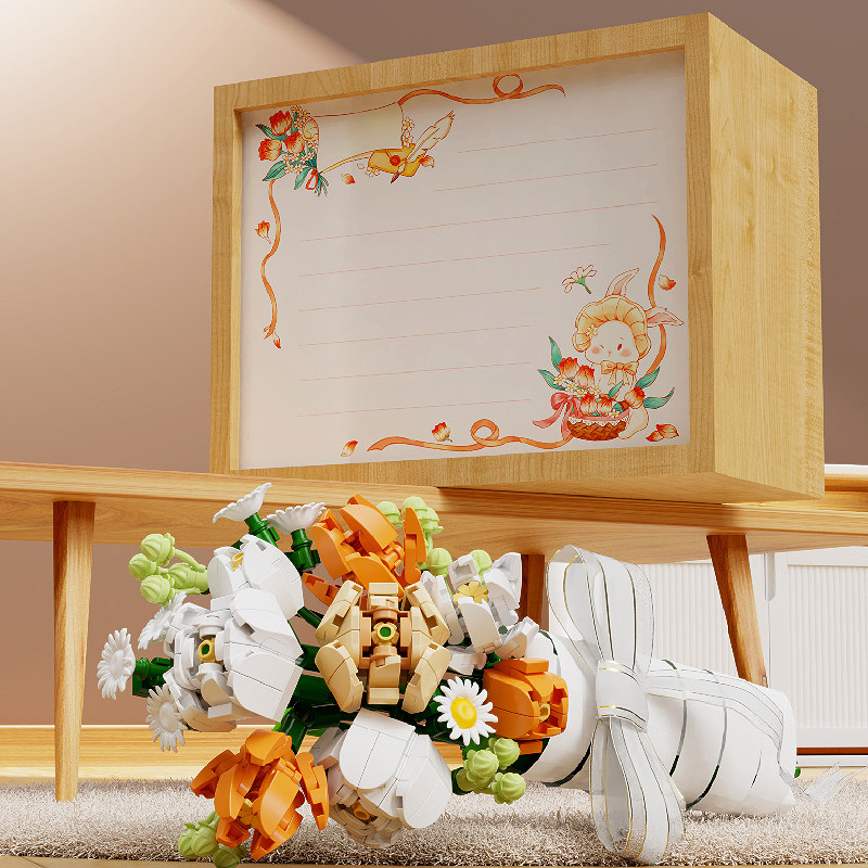 月光社FORYOU积木永生花束玫瑰相框diy手工拼装 玩具节日礼物女生