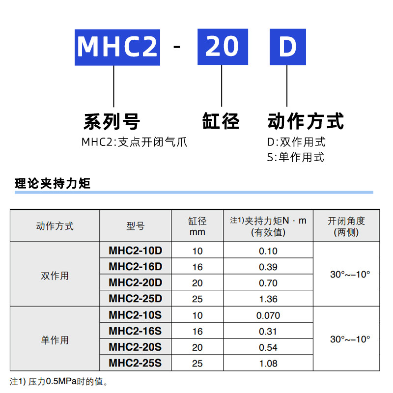 20S 32D支点型气爪夹爪小型 气动手指气缸MHCA2 25D MHC2