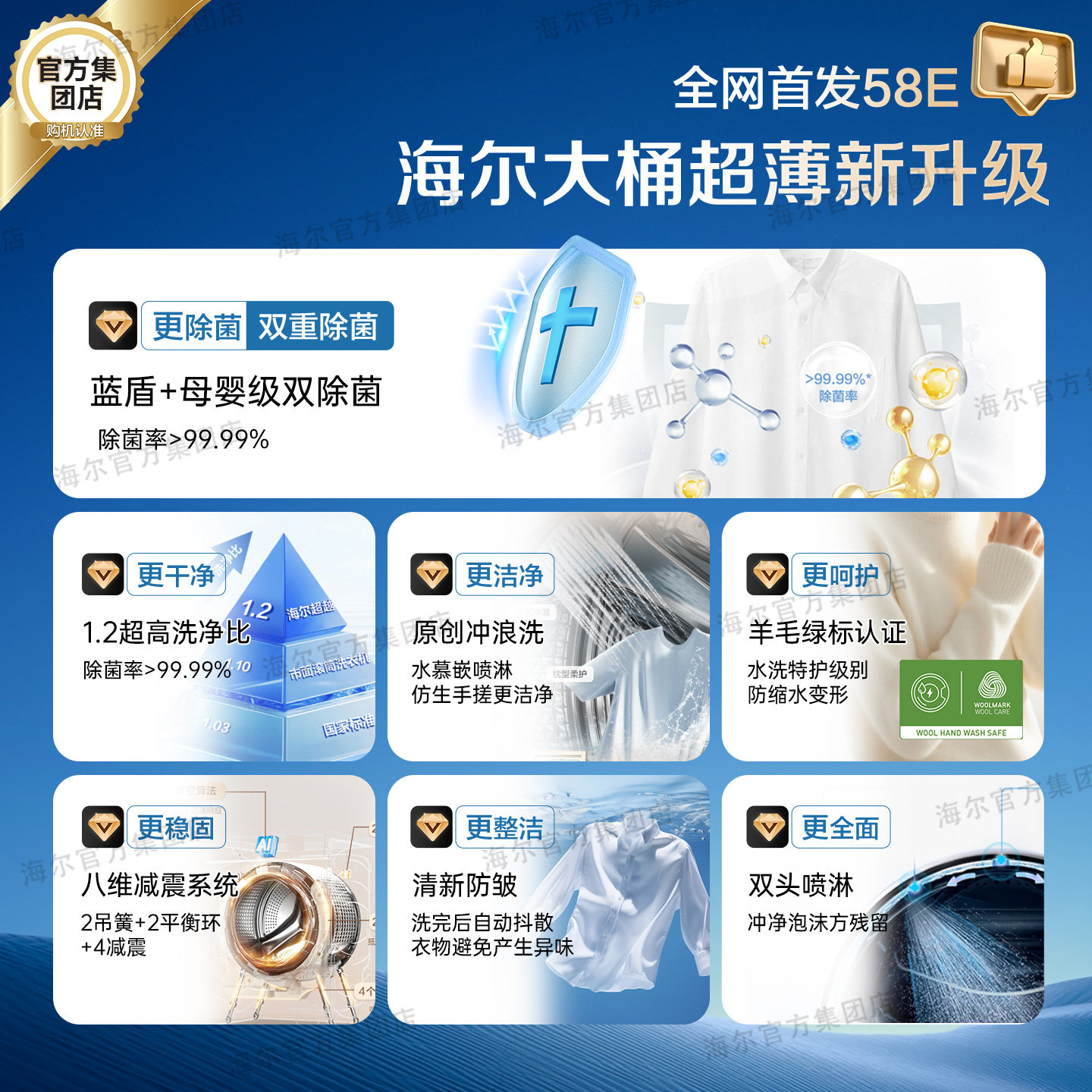 海尔滚筒洗衣机大容量11公斤kg超薄全自动58E家用洗烘官方旗舰店