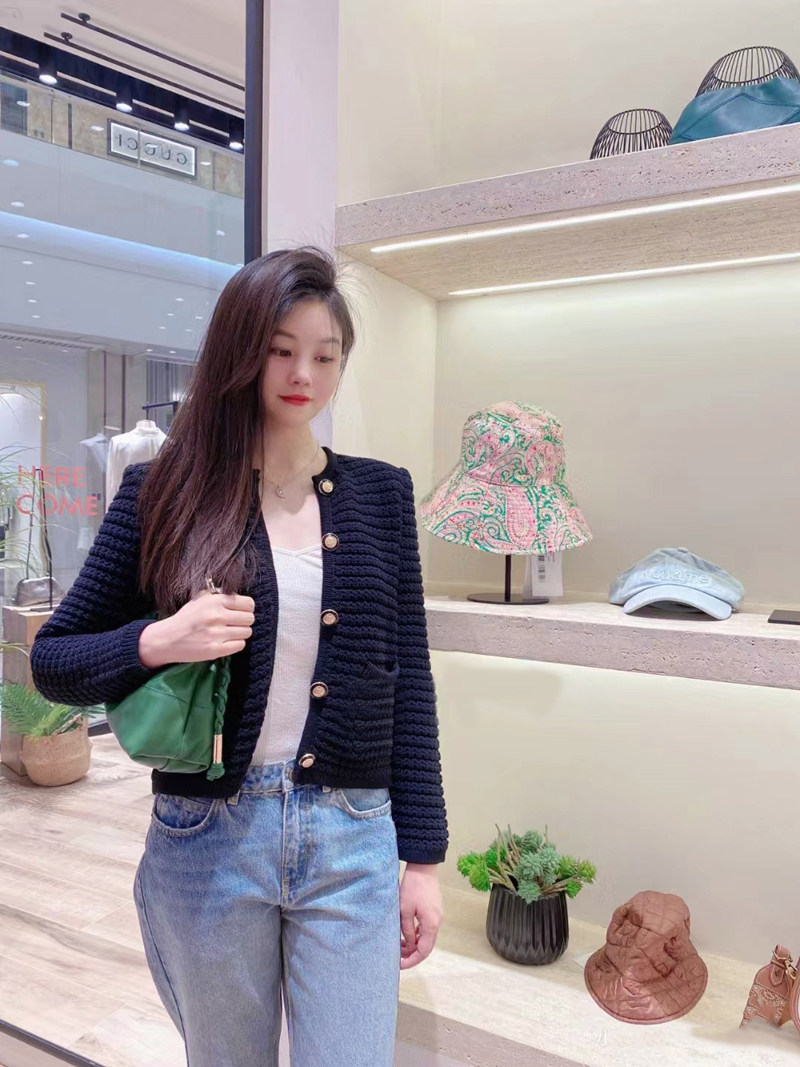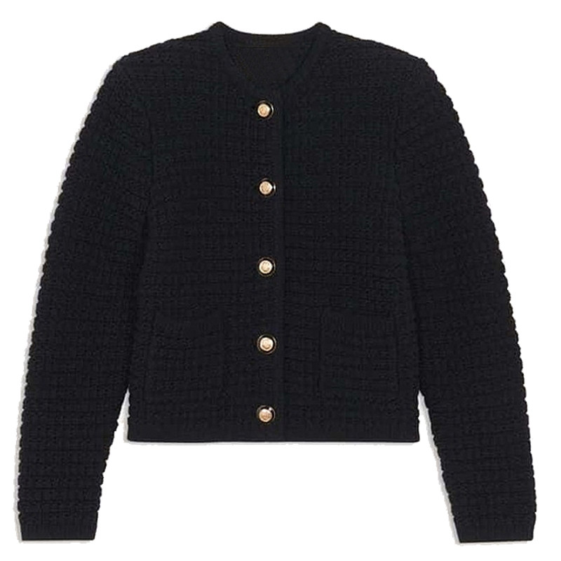 黑色气质单排扣棉质粗编织针织开衫 小香风新款 优雅外套 法式 纯元