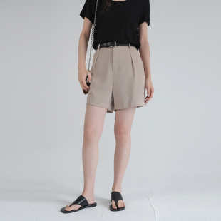 新款 胖MM高腰西装 短裤 蓝若水大码 宽松垂感休闲裤 2026夏季 时尚 女装