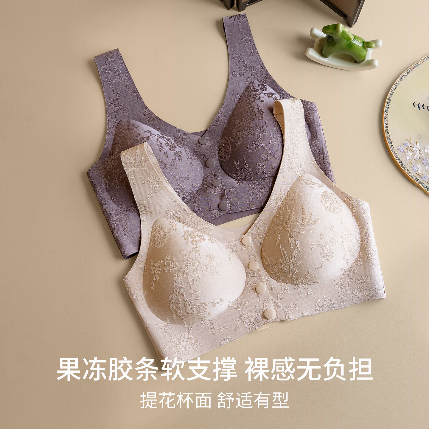 美宅国风浮雕前扣内衣女士文胸无钢圈小胸聚拢防下垂大码 2025新款
