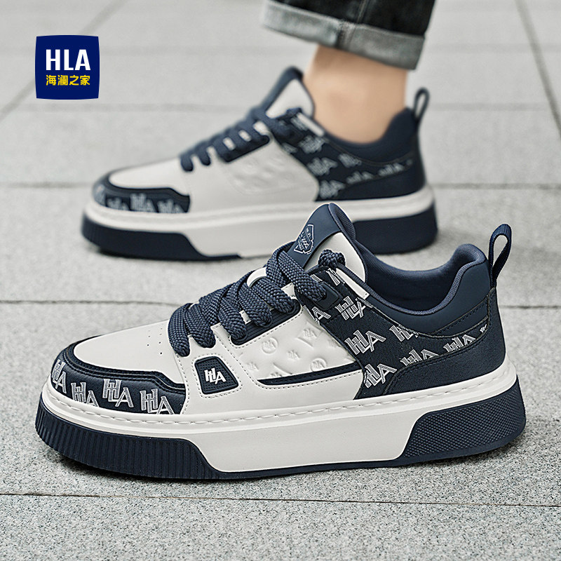春季 新款 潮流增高板鞋 复古老花休闲鞋 HLA 透气百搭鞋 海澜之家男鞋