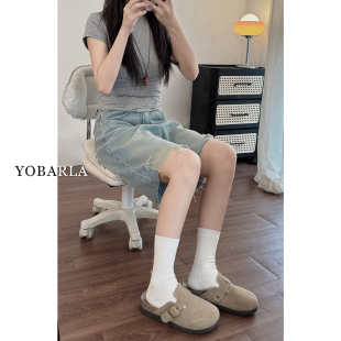 胖mm宽松显瘦五分直筒中裤 浅色破洞牛仔短裤 大码 新款 子 女高腰夏季