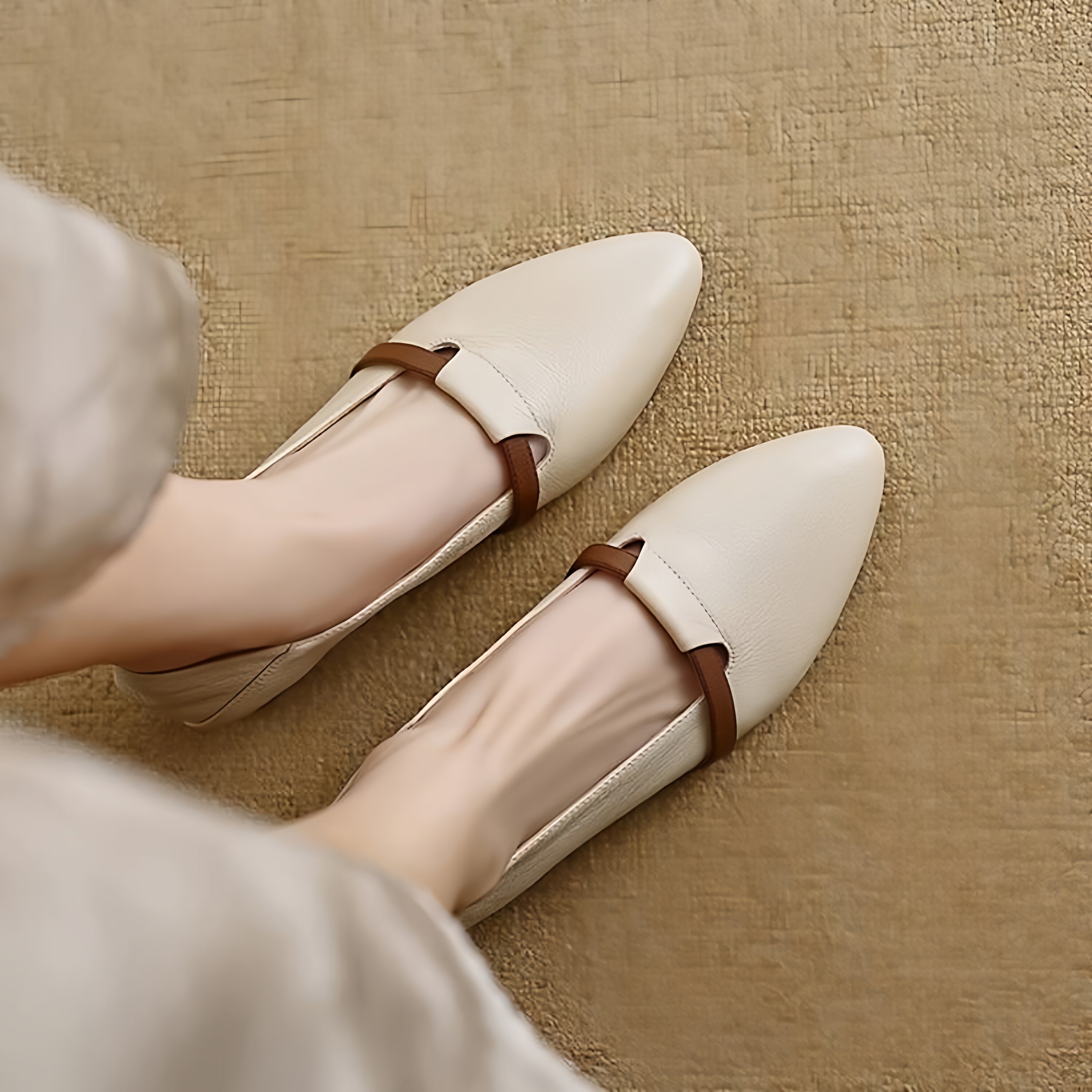 拼色软底尖头小皮鞋 女2025年春秋新款 女 真软皮低跟单鞋 品牌断码