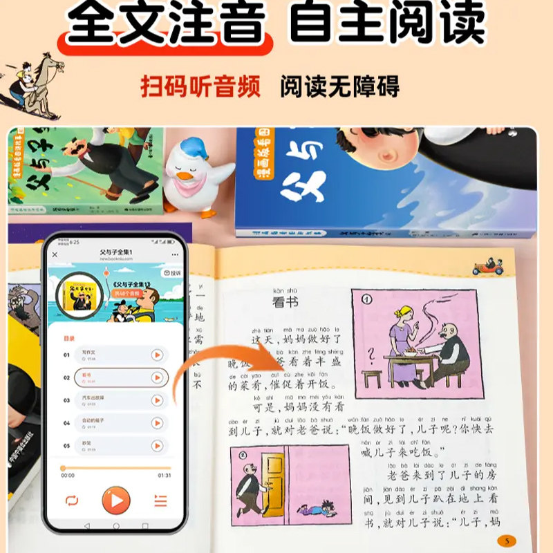 漫画读物 连环画看图讲故事作文小学生一年级二年级上下册三四课外阅读书籍儿童说话写话绘本原版 父与子漫画书全集正版 彩色注音版
