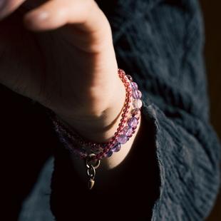非鱼之家原创设计紫幽灵石榴石个性 复古百搭多层手串手饰 手链女