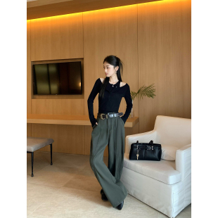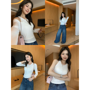 针织长袖 短款 t恤女叠穿背心设计感露肩上衣 真两件套 pusumede