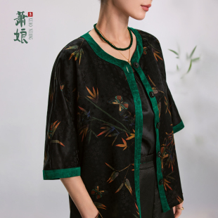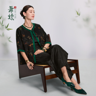 春夏1761 上衣绿色宽松百搭外套套装 萧娘香云纱新中式 桑蚕丝衬衫