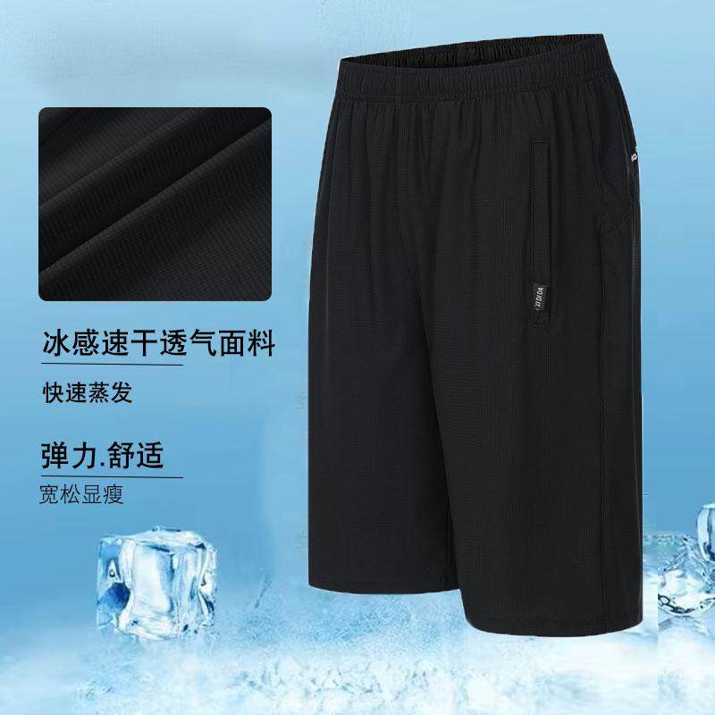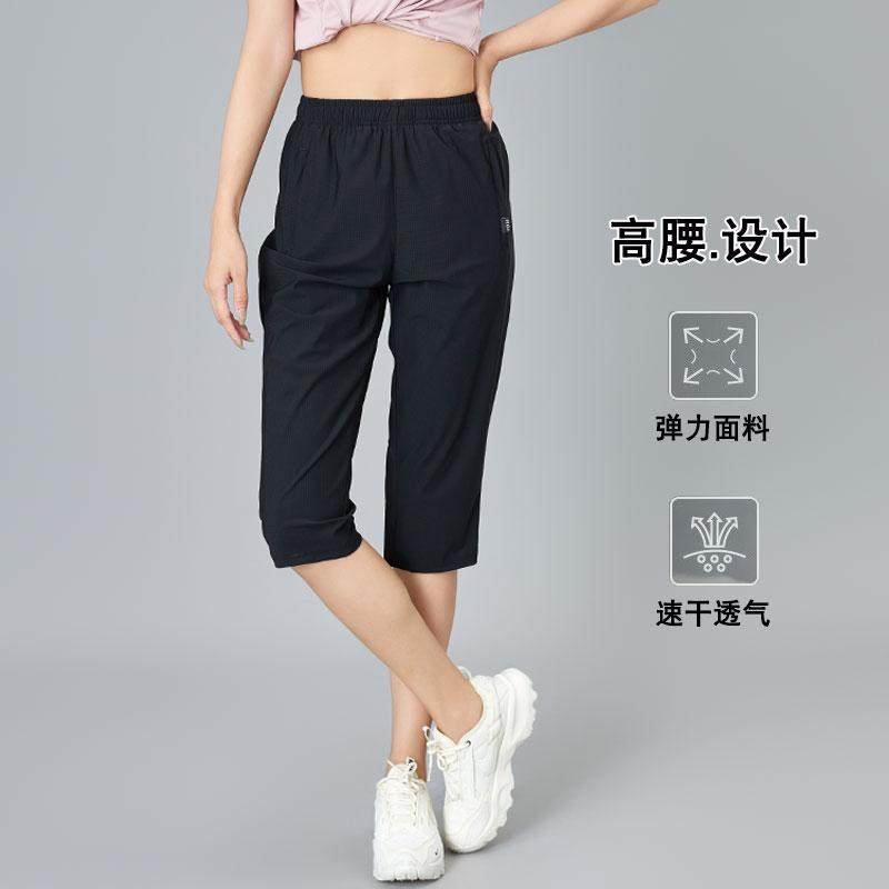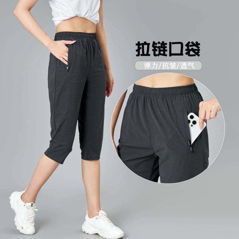 高腰冰丝弹力速干休闲拉链口袋跑步健身中裤 运动裤 女七分夏天薄款