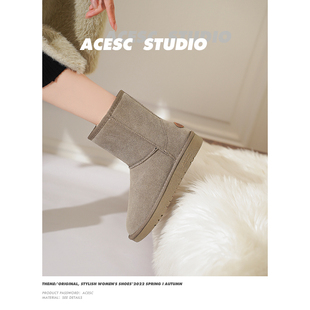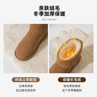 保暖加厚加绒大码 洋气面包鞋 新款 牛皮中筒雪地靴女冬特厚靴子棉鞋