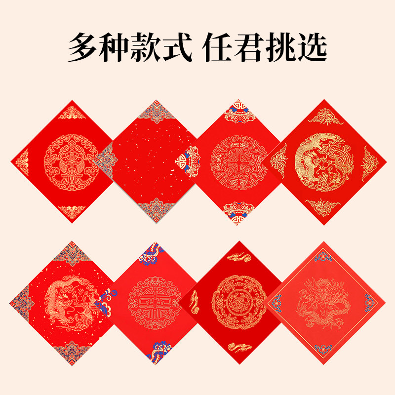 特惠100张福字红纸对联纸蜡染空白手写福字斗方春联专用纸宣纸春节写福字纸书法定制批发春联纸自写可拓印