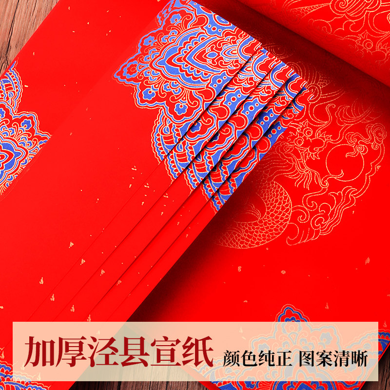 2026马年蜡染万年红对联纸过年手写空白新款 宣纸加厚新年七言春节红纸大红福字洒金书法批发 春联专用自写套装