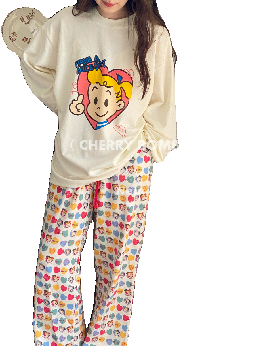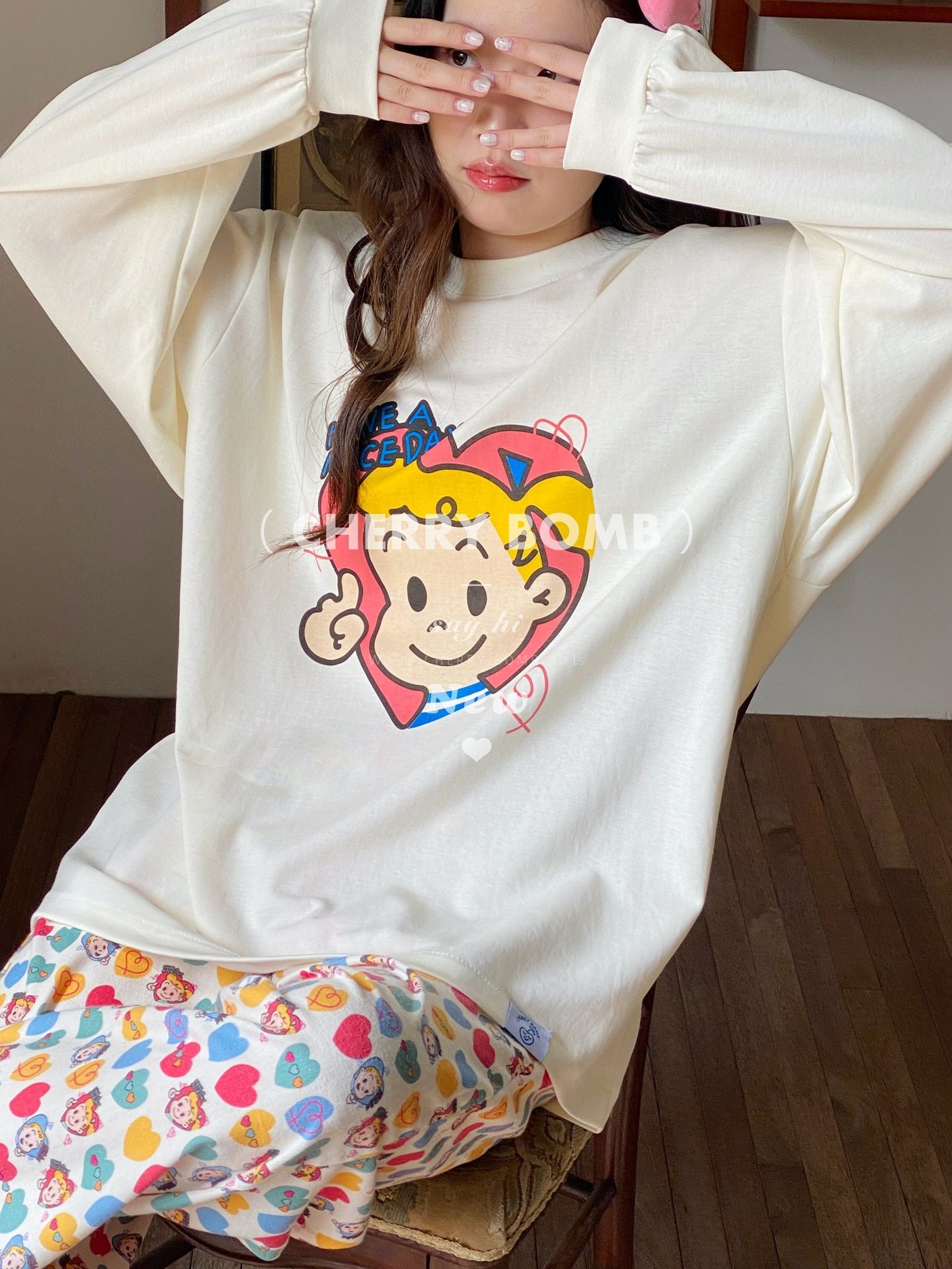 我是原田小女孩 CherryBomb秋宽松舒适原田卡通卫衣T恤睡衣睡裤
