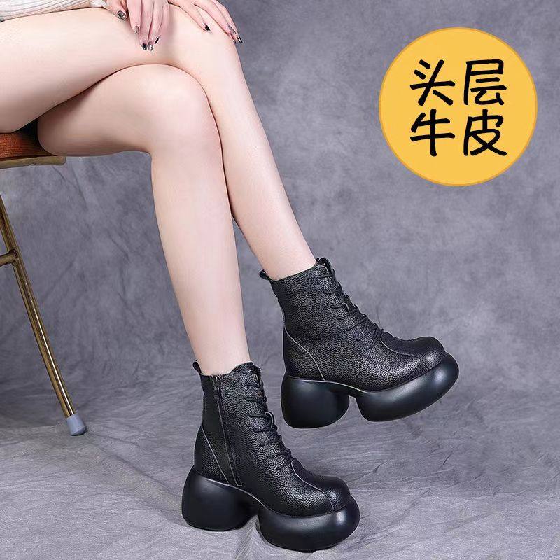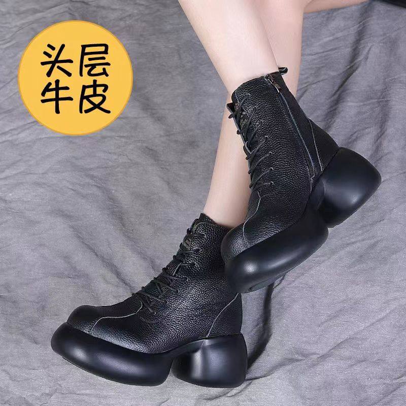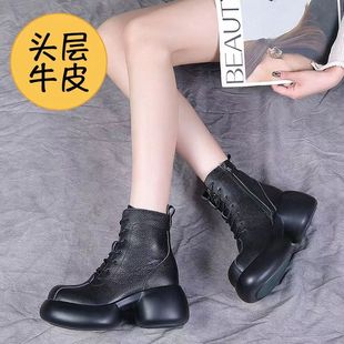 全牛皮 秋冬保暖马丁短靴休闲加绒加厚棉靴真皮 雪地靴女2025新款