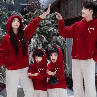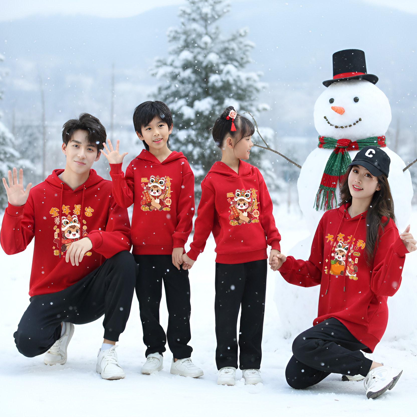 炸街红卫衣 一家三四口秋冬母子母女款 过新马年2026新款 高端亲子装