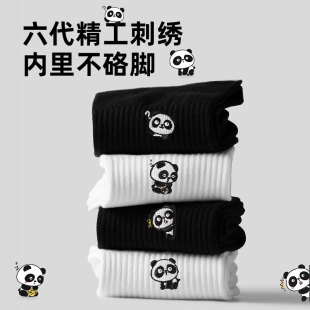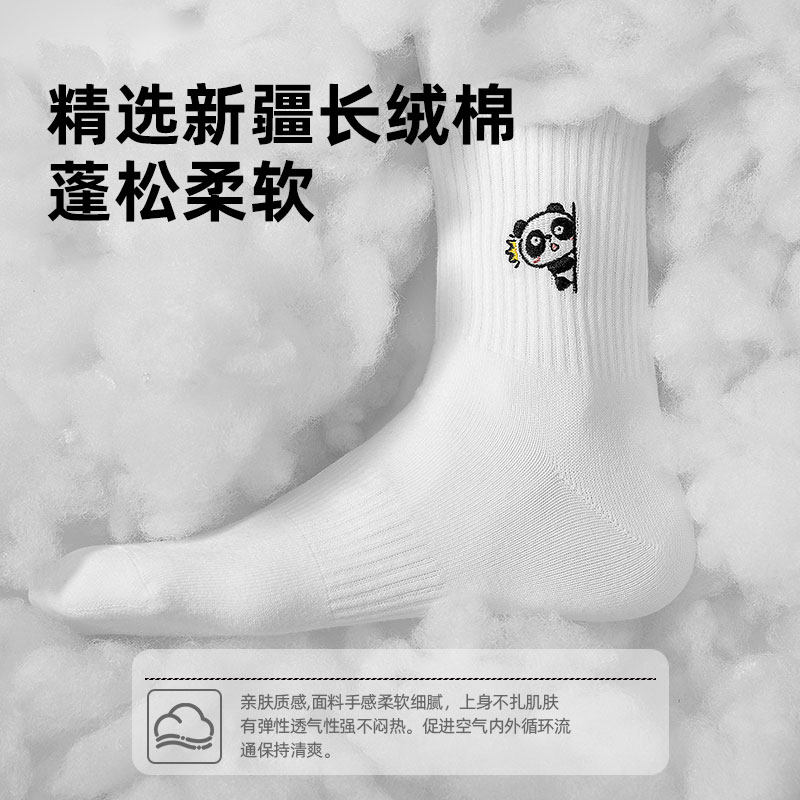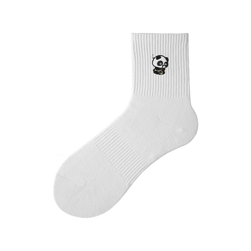 子墨原创熊猫刺绣可爱卡通袜子男士 男生防臭纯棉纱线白中筒袜 夏季