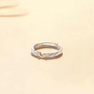潮流日月同辉情侣一对戒指男女小众设计欧美丁达尔太阳月亮可调节