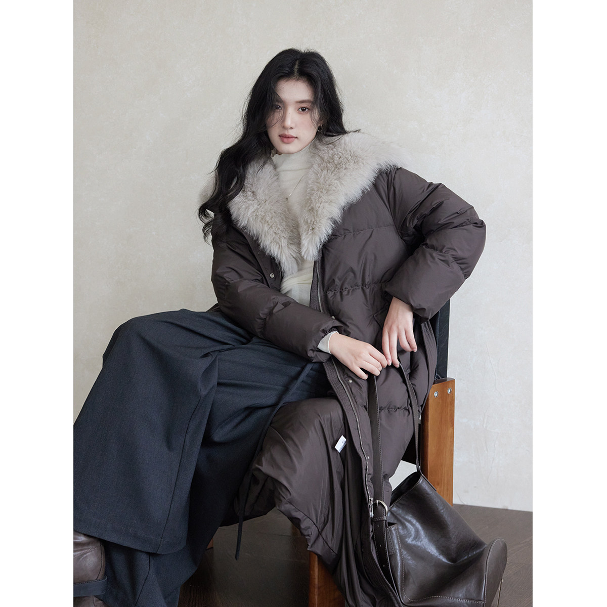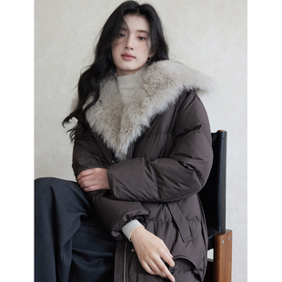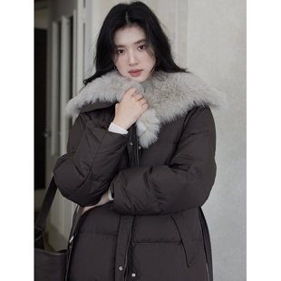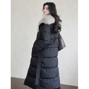 外套 高质感蓝狐毛领保暖90白鸭绒羽绒服黑色长款 贰羊设计 洛枳