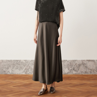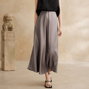 A字裙子 醋酸缎面斜裁半身裙女松紧腰国风新中式 如意连云 春夏新款