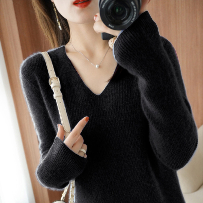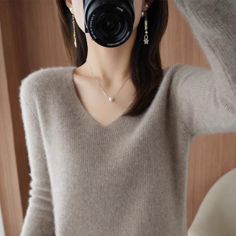 显瘦内搭毛衣套头针织打底羊毛衫 女V领修身 羊绒衫 2025秋冬新款