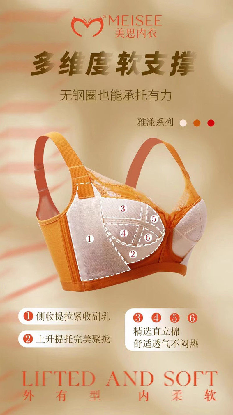 美思内衣新款 无钢圈文胸大罩杯FC0493 聚拢收副乳性感大胸显小薄款