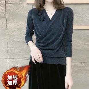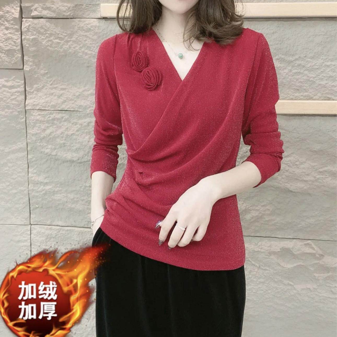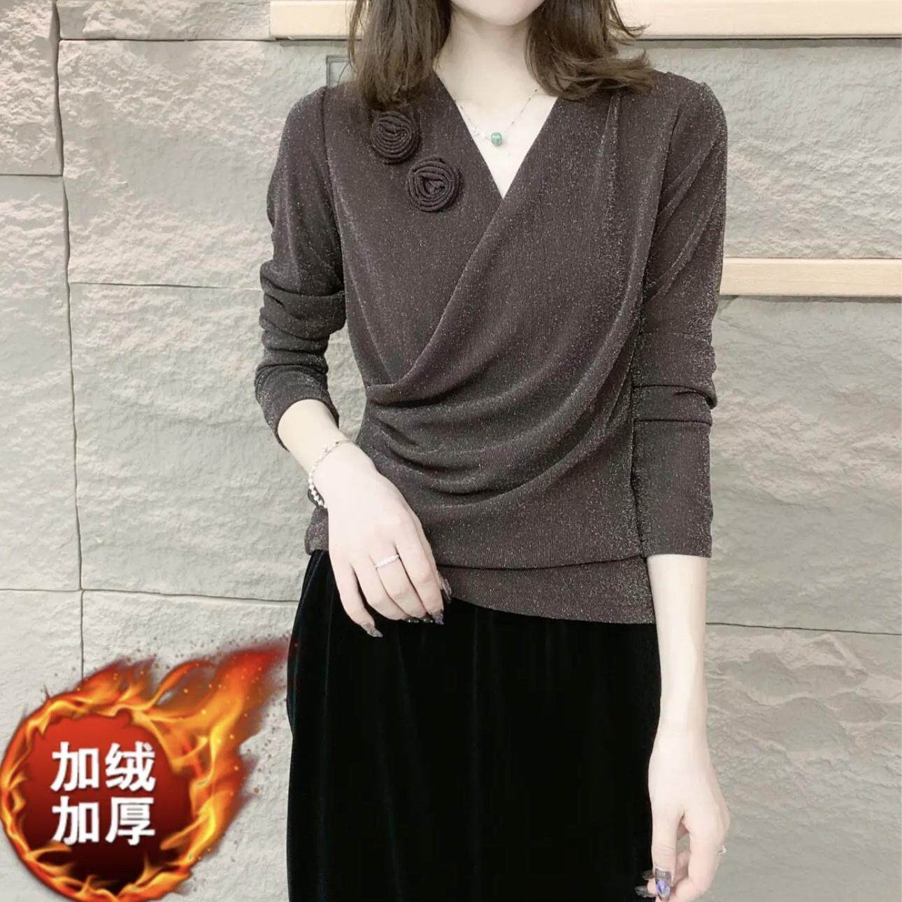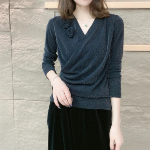 洋气花朵小衫 新款 上衣女气质百搭减龄打底衫 弹力网纱修身 V领时尚