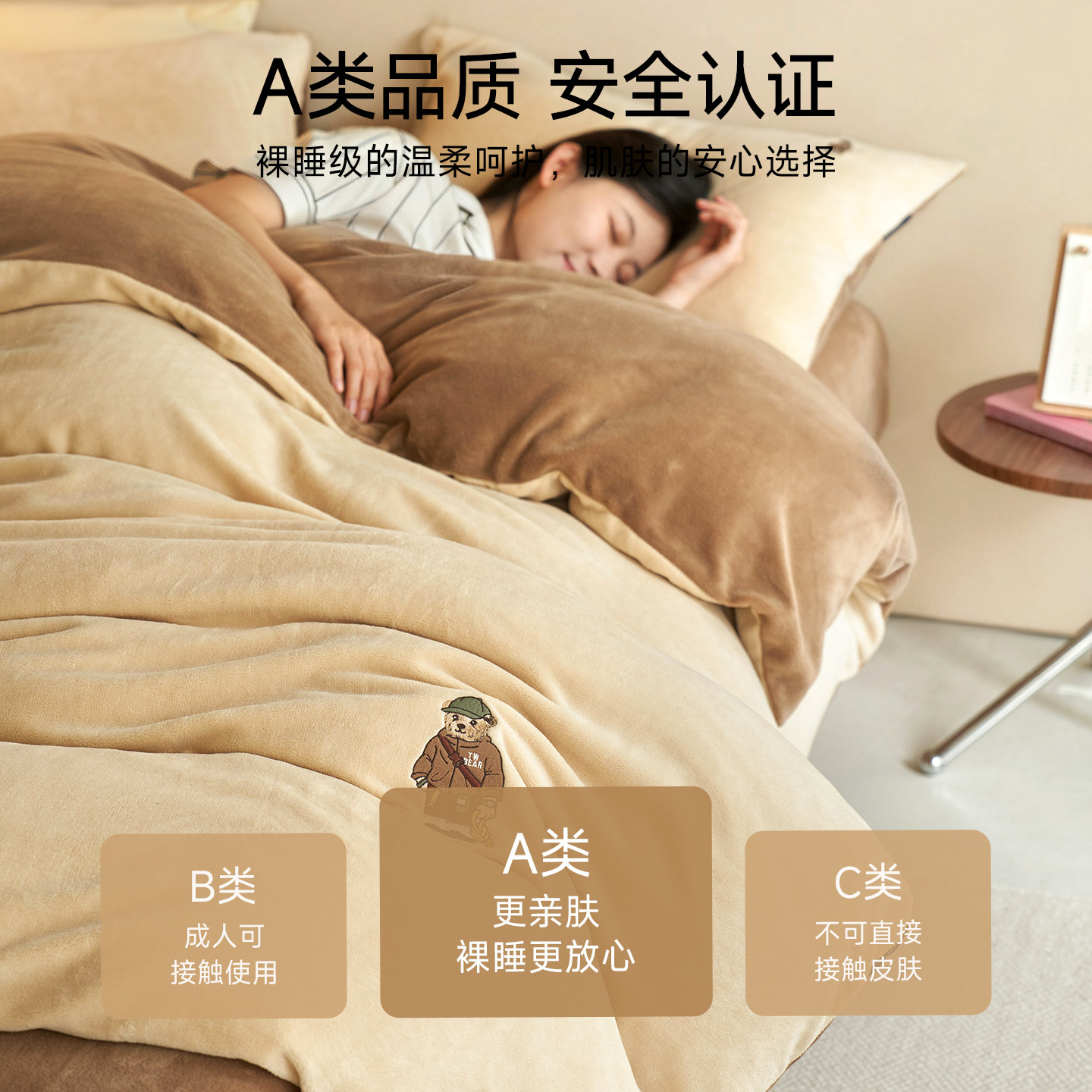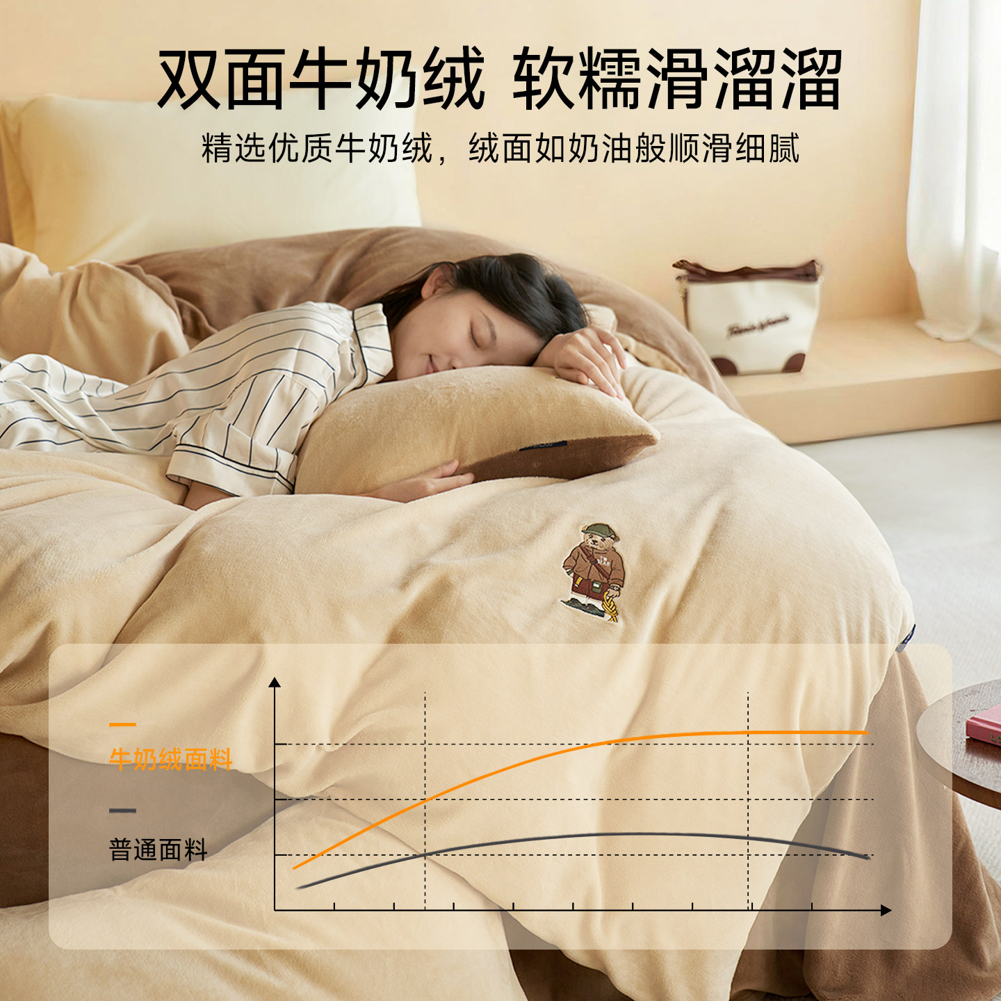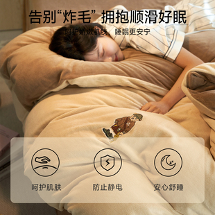 TeenieWeenie小熊牛奶绒四件套美拉德风珊瑚绒被套加绒床单三件套