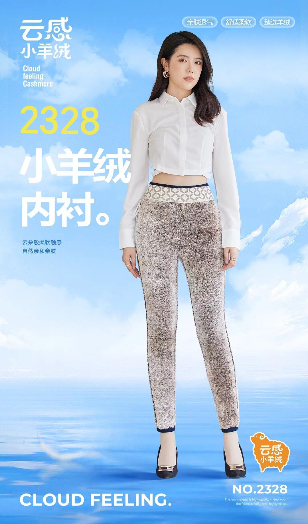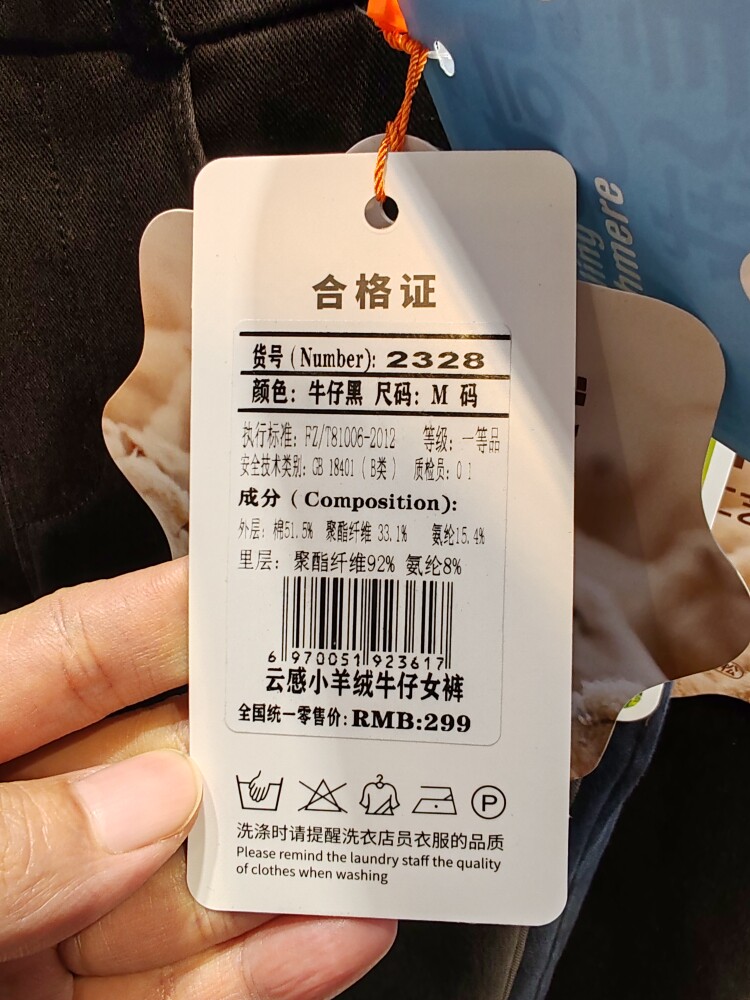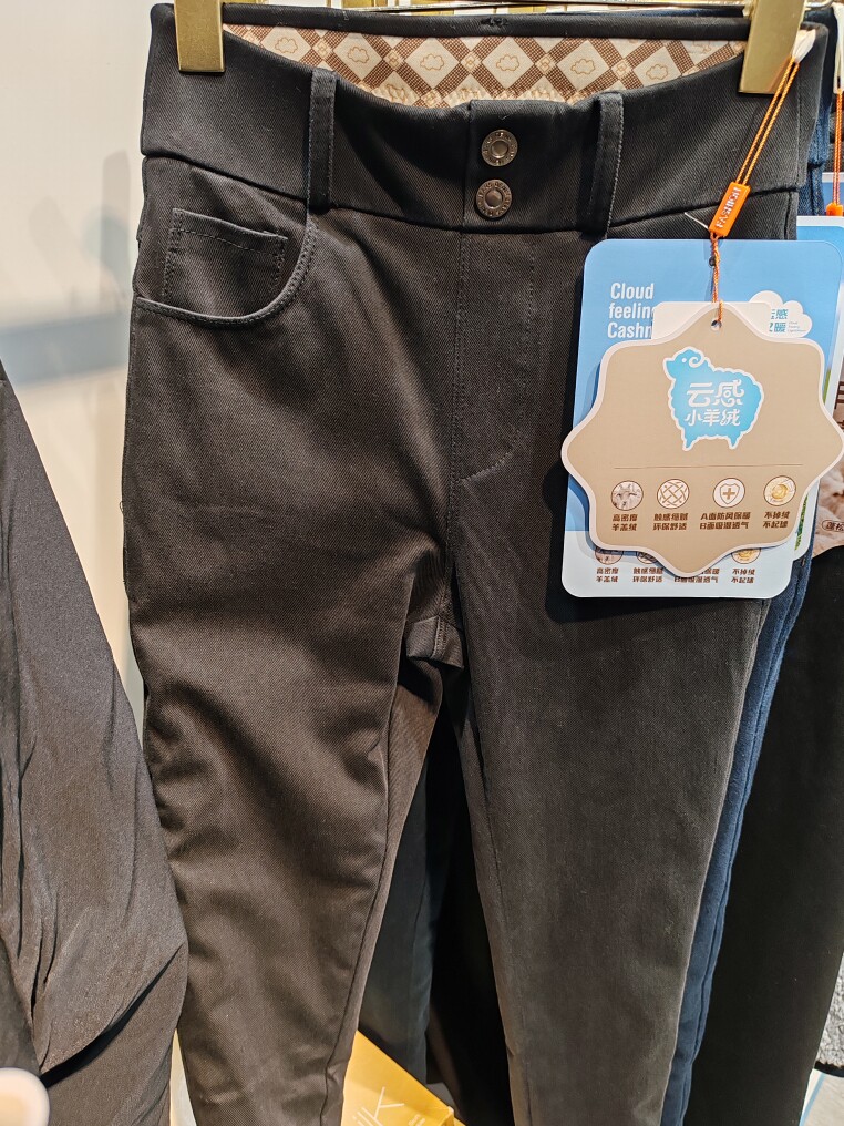 莎卡琳2328中高腰两粒扣云感小羊绒牛仔裤 女加绒加厚高弹力长裤