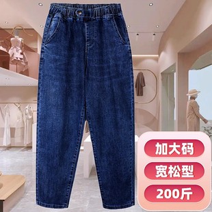 胖mm宽松显瘦高腰弹力喇叭裤 大码 女秋冬新款 复古不贴腿微喇牛仔裤