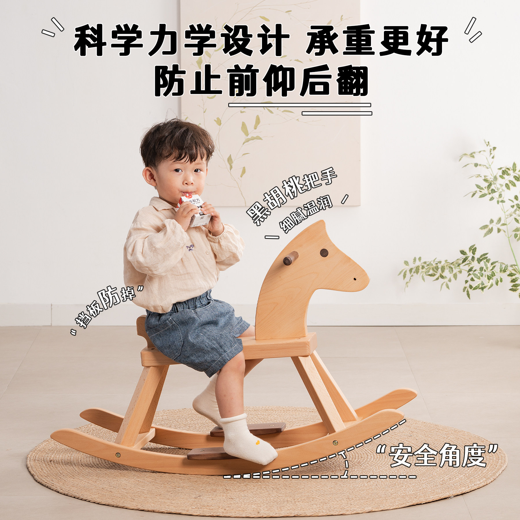 木马实木儿童摇摇马婴儿宝宝小摇椅木质玩具生日礼物防摔大人可坐