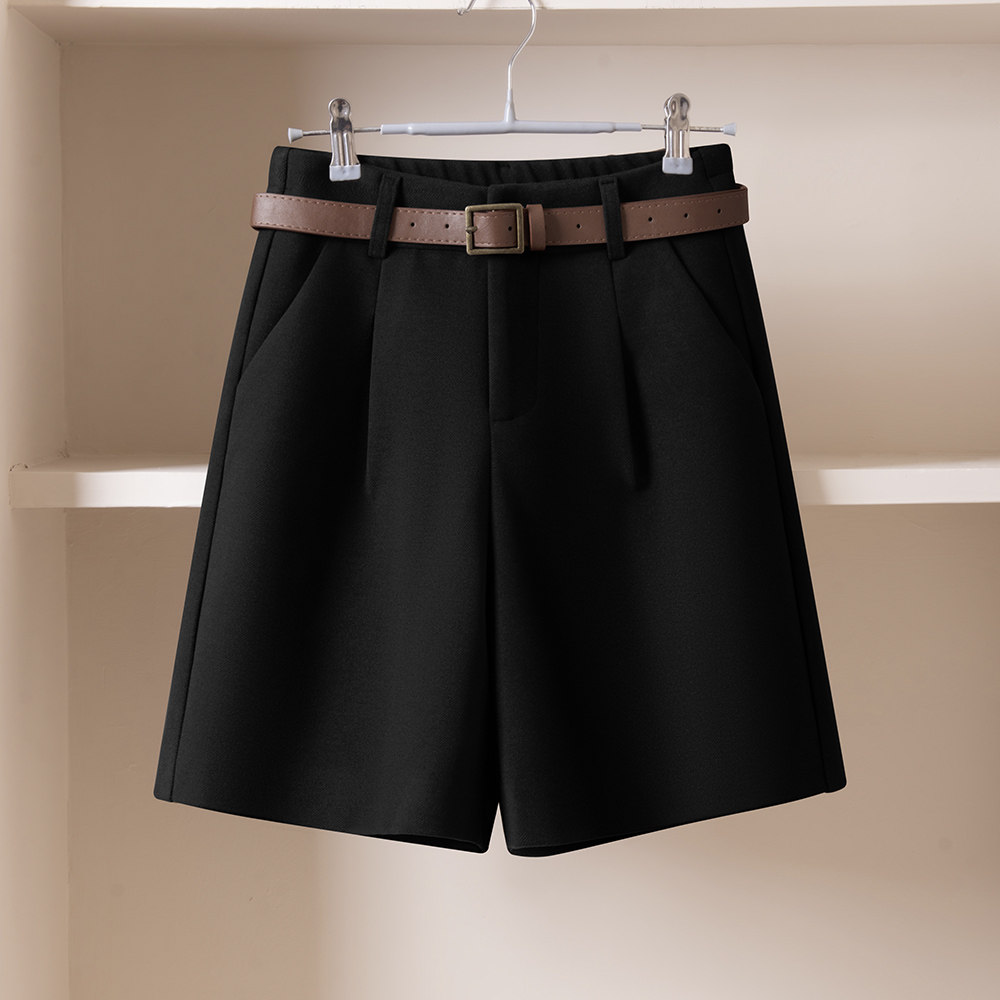 百搭a字短裤 休闲毛呢阔腿裤 松紧腰显瘦五分裤 2025年新款 女秋冬季