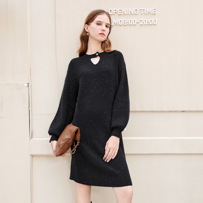 针织连衣裙子 镂空宽松打底中长款 betu百图冬季 新款