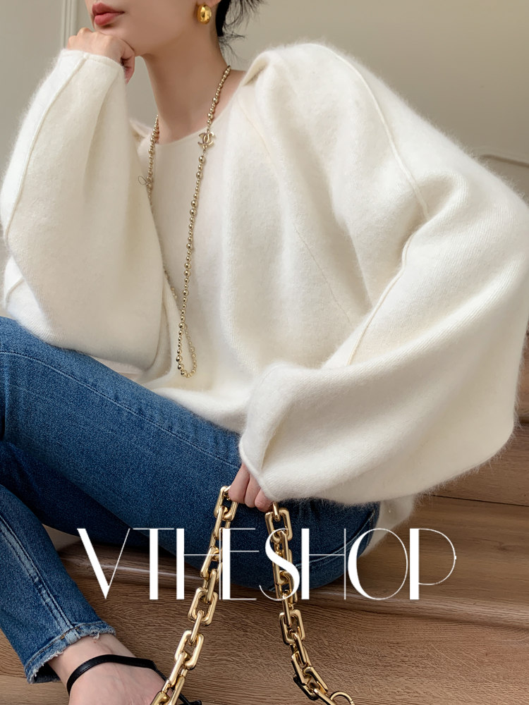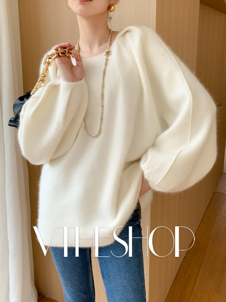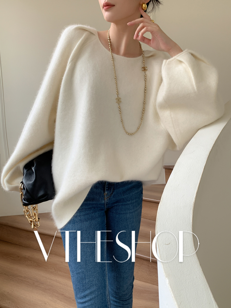 针织上衣2025秋冬新款 灯笼袖 浣熊绒毛衣女宽松慵懒软糯洋气泡泡袖