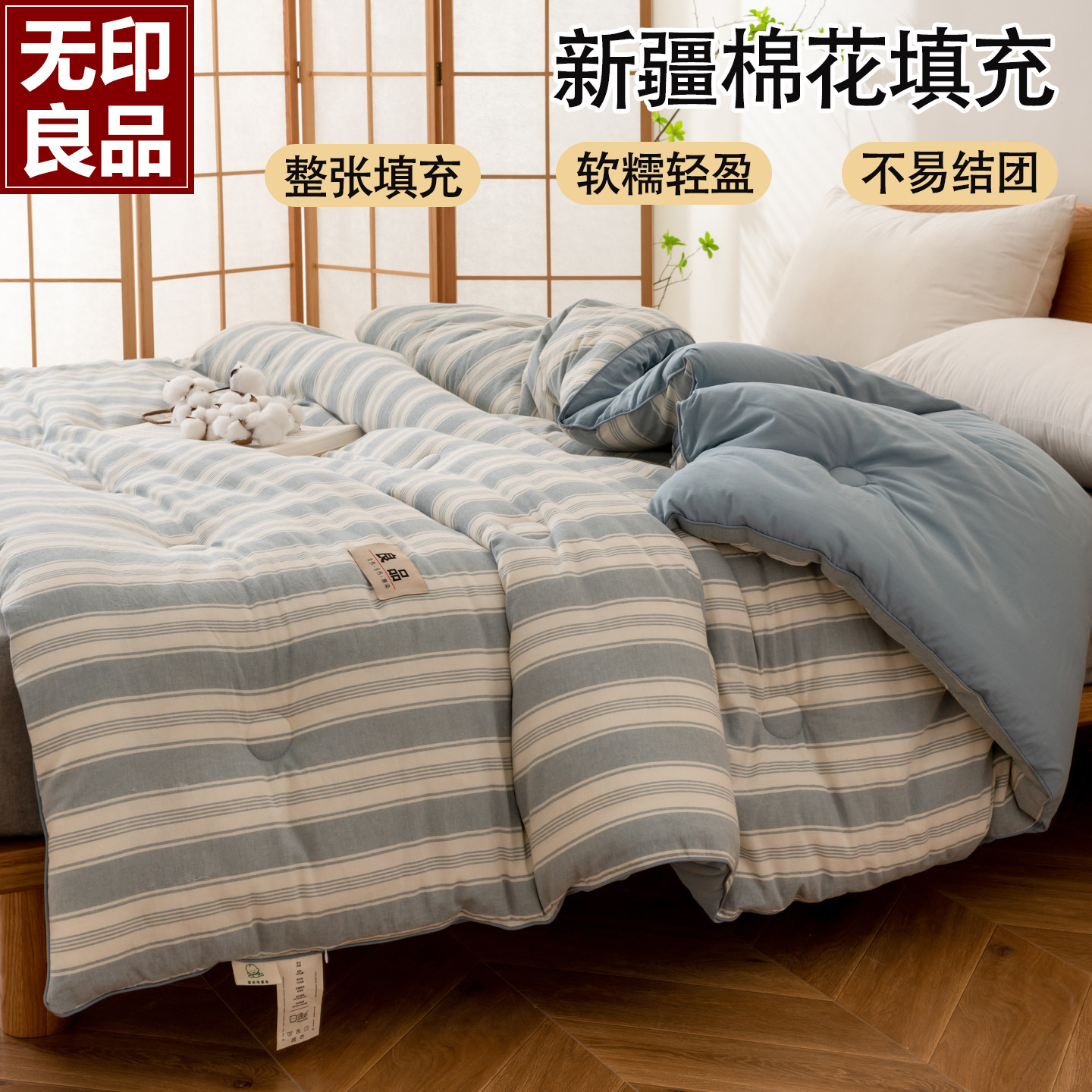 直接盖里外全棉被子 加厚棉被冬被 无印良品新疆棉花被被芯春秋被