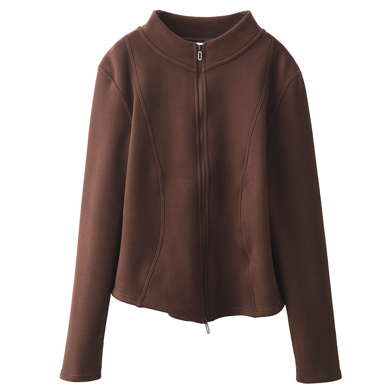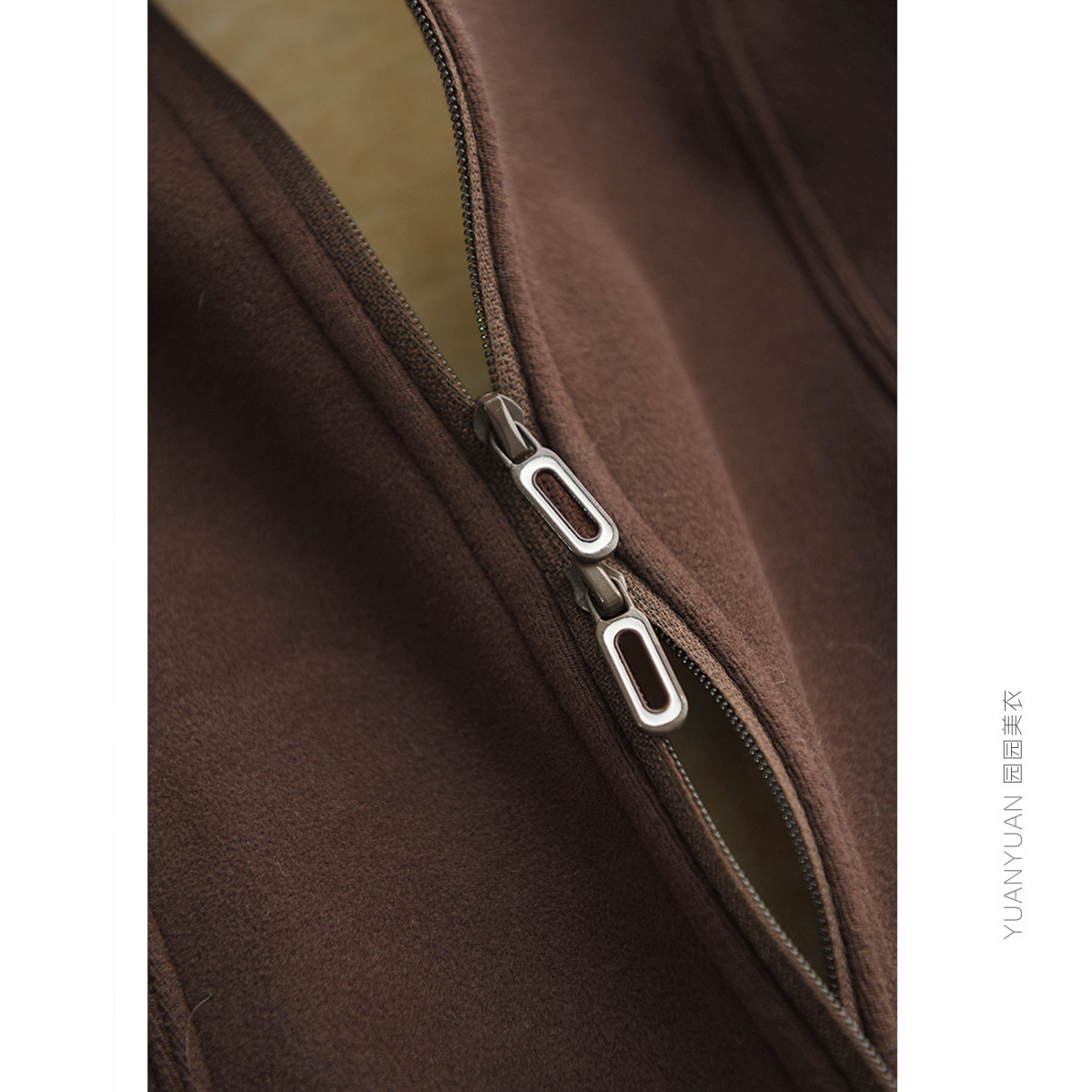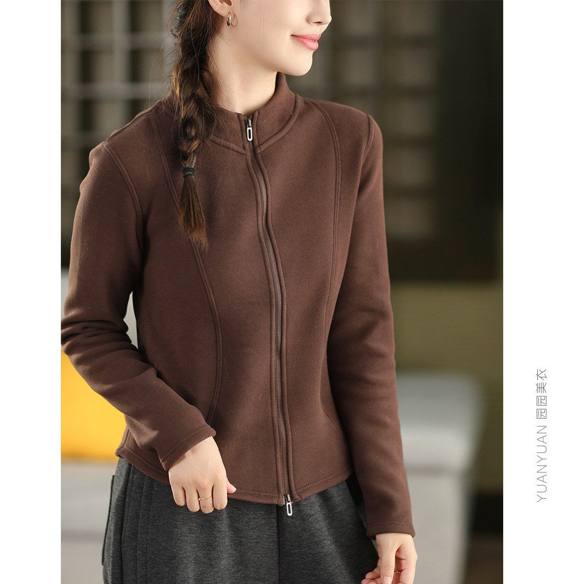 加绒加厚羊毛绒暖肤桑蚕丝立领双拉链女外套修身 上衣 显瘦保暖开衫