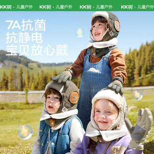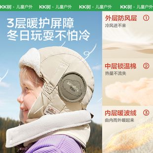 KK树儿童帽子秋冬季 男童雷锋帽女孩宝宝防风护耳保暖围脖防寒新款