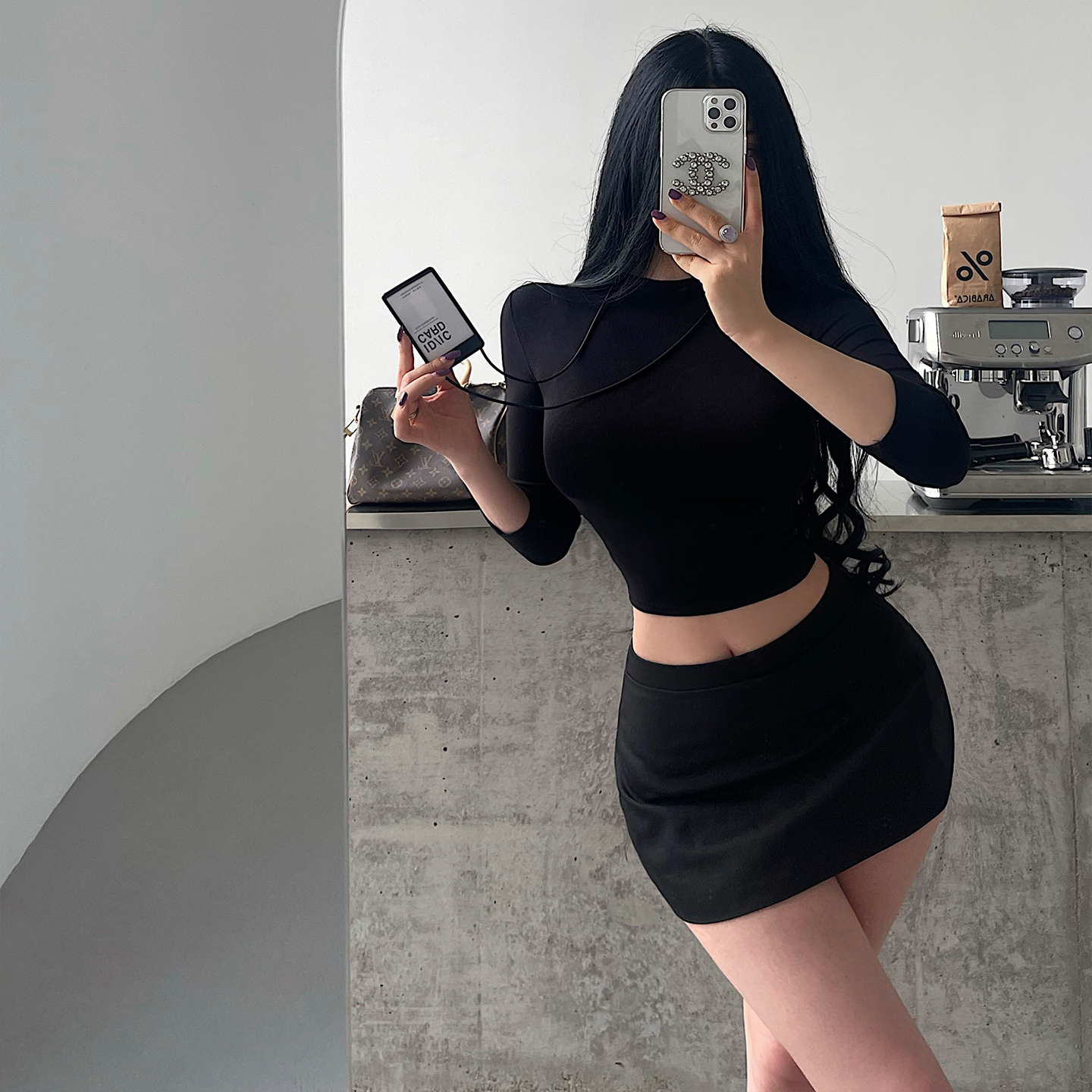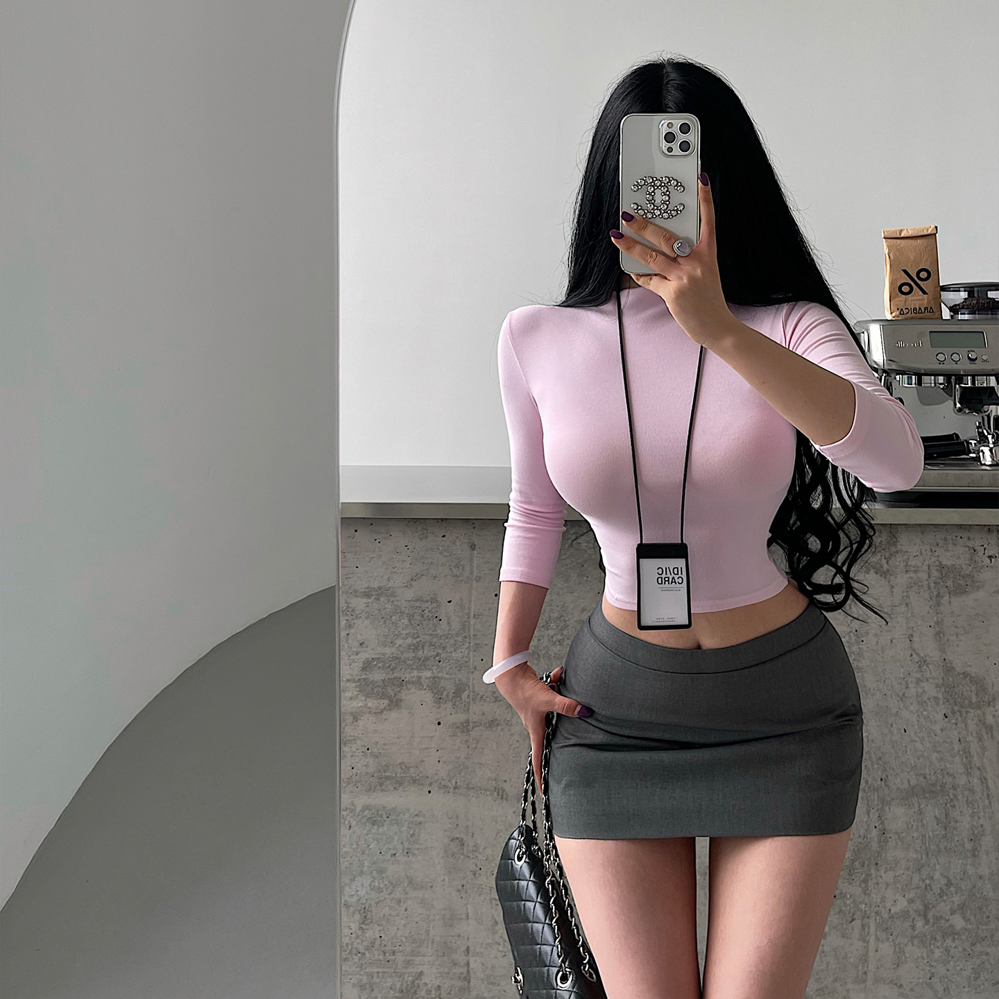 纯色七分袖 紧身显瘦小高领短款 T恤上衣 纯欲风基础款 YoungGirlDay