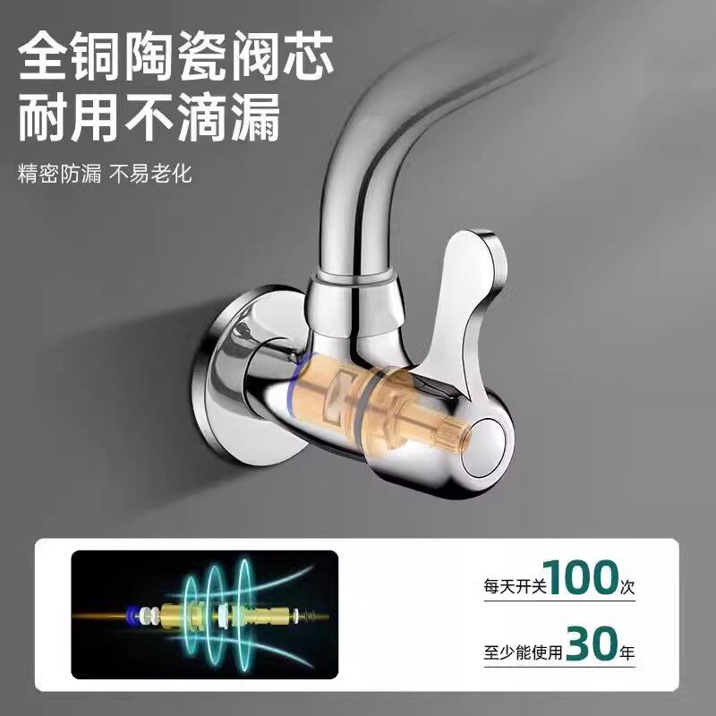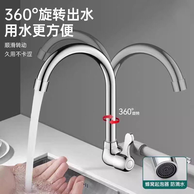 全铜入墙式 单冷厨房洗菜盆水龙头家用卫生间面盆万向旋转防溅水