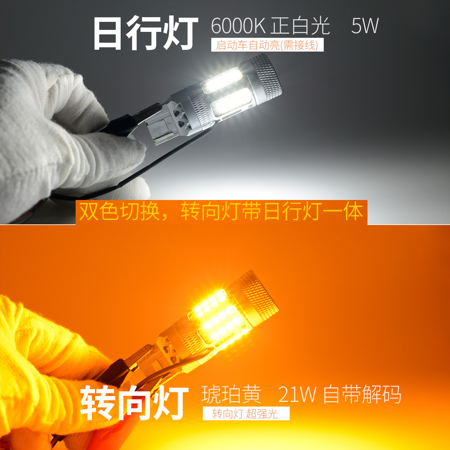 超亮 1156解码 LED转向灯带日行灯一体双色灯泡汽车改装 转弯灯T20