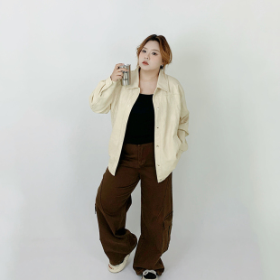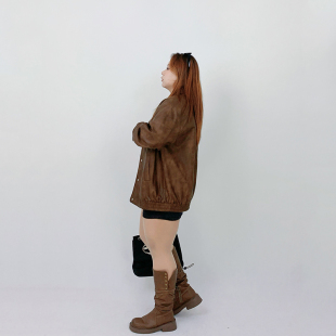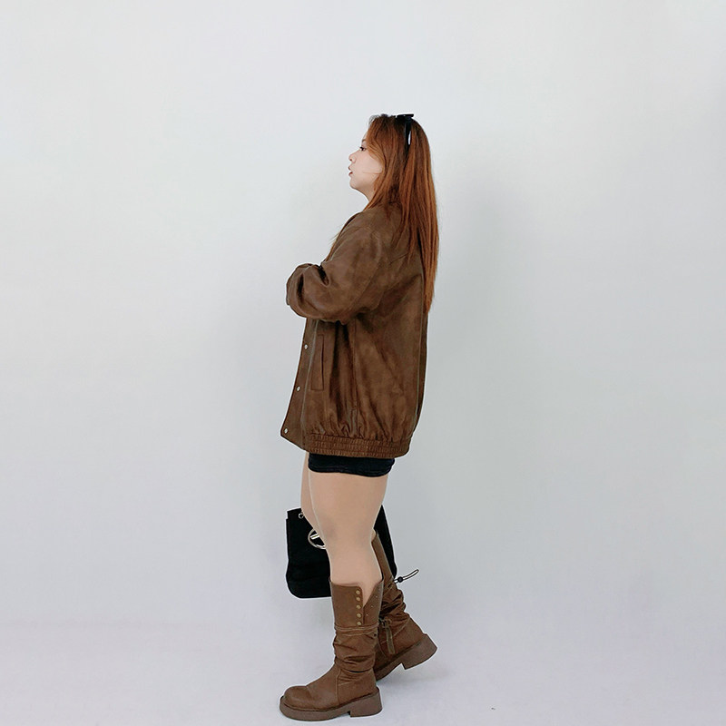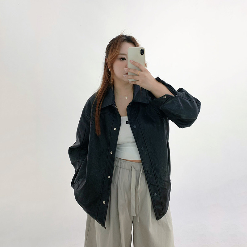 美式 秋冬季 复古宽松机车皮衣外套胖mm显瘦夹克上衣 女装 Milu家大码