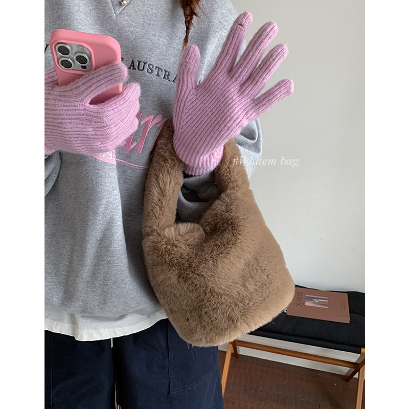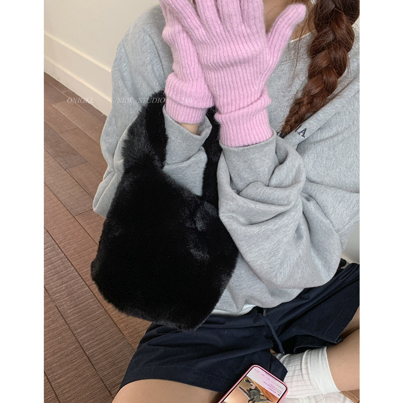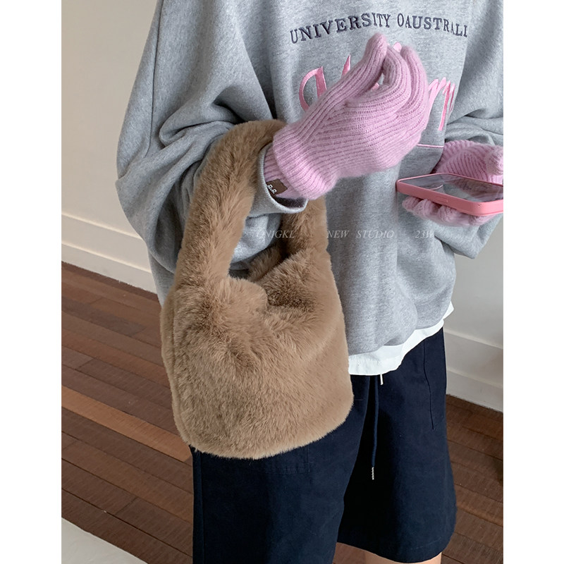 超火手提毛毛包 潮秋冬小众百搭爆款 韩系通勤毛绒包包女式 2025新款